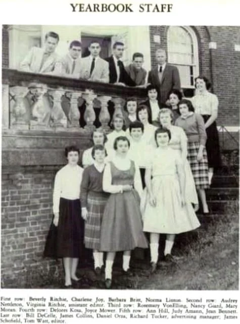 Nancy Foote writes, “My senior year, I was captain (third one in from the left, front row). We had just won the State Championship - a first for MHS baton squads.”